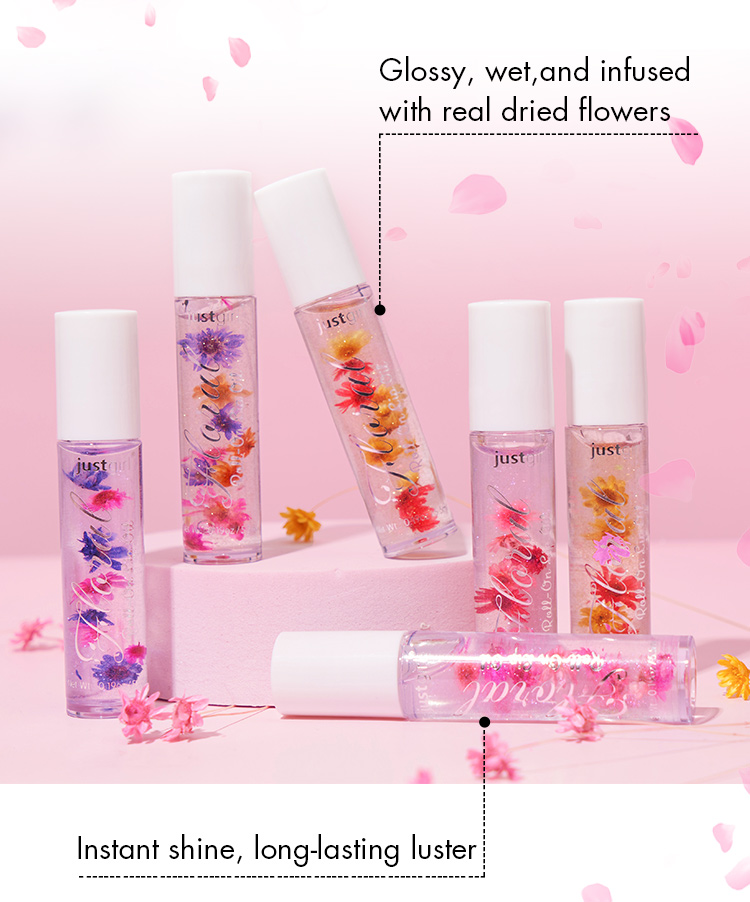 Dried Flower Infusion: The unique design features real dried flowers inside the lip oil, adding a touch of elegance and beauty while enhancing the visual appeal.