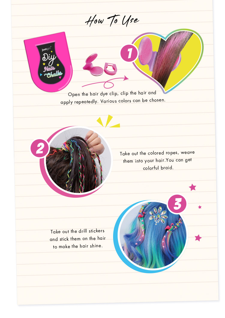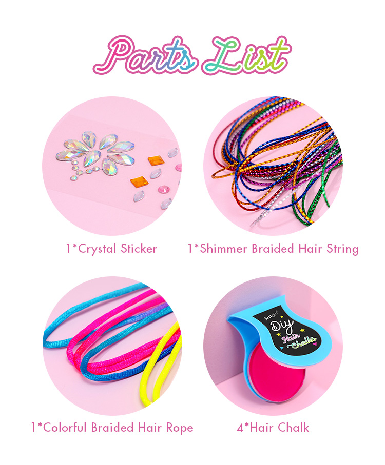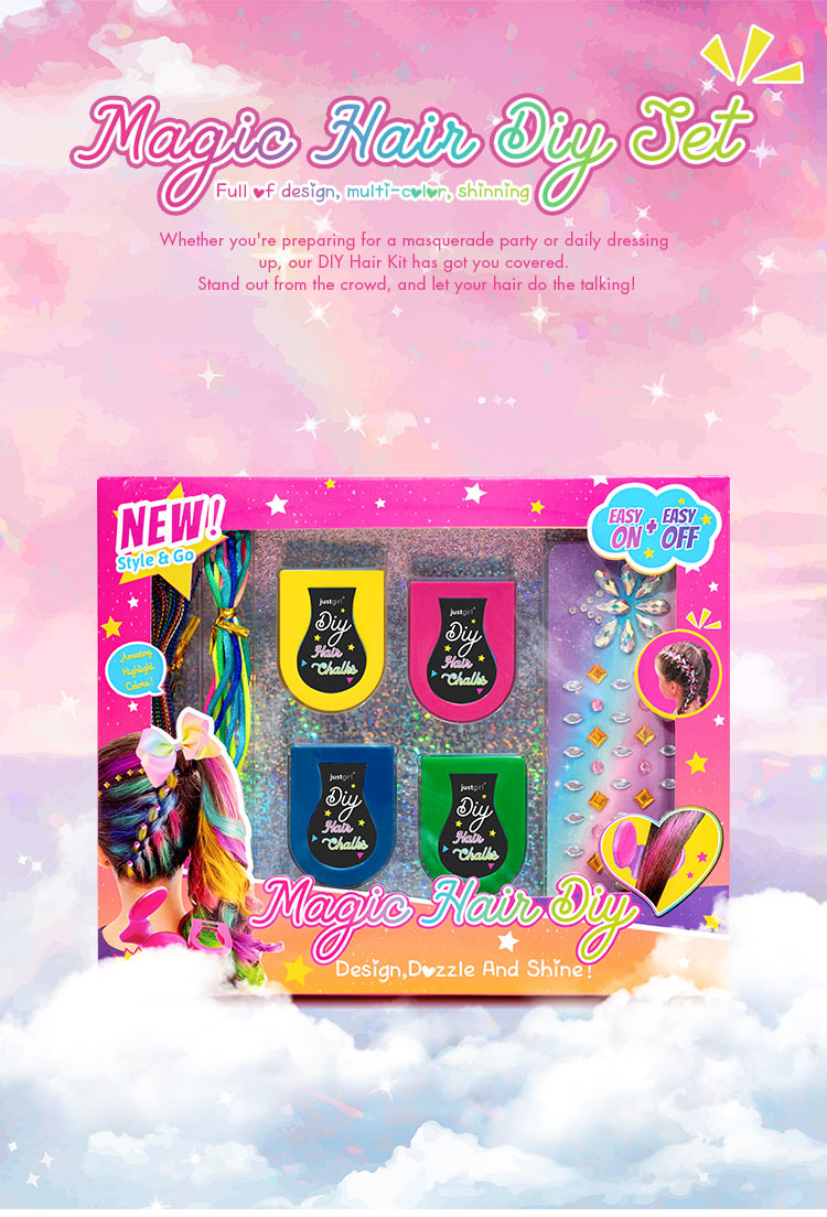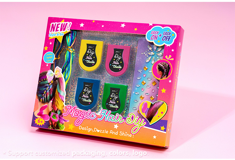 Customizable Hair Chalks: The set includes four vibrant hair chalks, offering customizable colors for endless styling possibilities. Perfect for creating playful, creative looks.