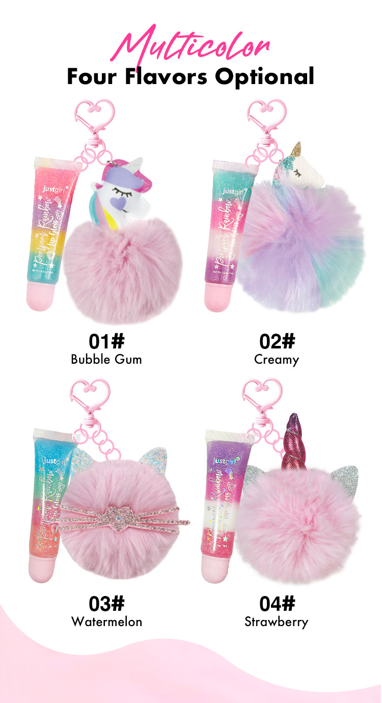 Kids Fruit Favor Glitter Lip Gloss With Key Chains