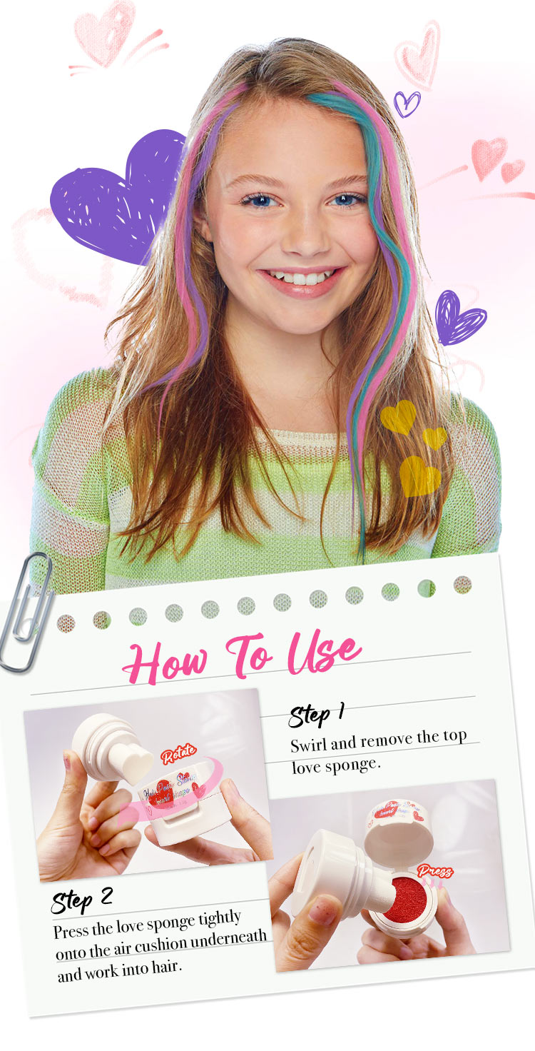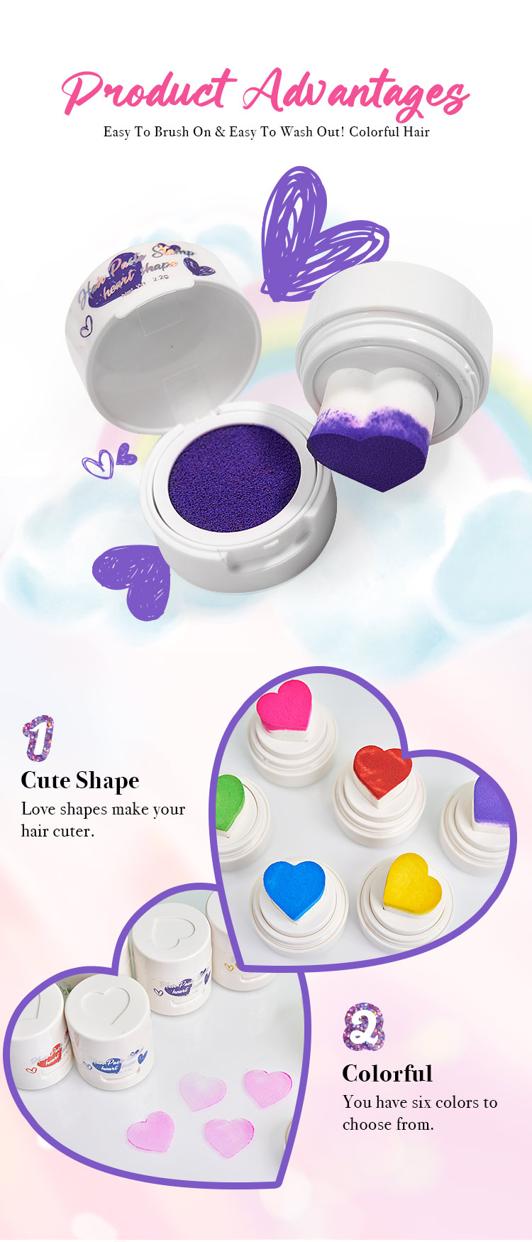 Fun & Creative Design: Our hair dye features a unique heart-shaped stamp and cushion design, making the application process fun and easy for kids. Simply press the stamp to absorb the dye and apply evenly.