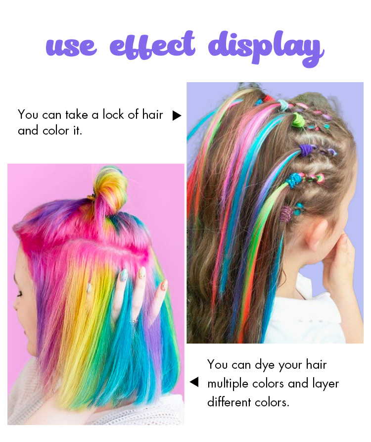 Safe & Washable: This one-time-use dye is specially formulated for kids, using non-toxic, gentle ingredients. It washes out easily with water, leaving no long-lasting stains.